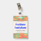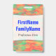 Caractéristiques de conception ce d'insigne un motif nuageux splotchy abstrait on pourrait dire que qui ressemble à l'aspect de quelques peintures d'aquarelle. Il comporte de diverses nuances de couleurs comme le vert, le rouge et l'orange. Il comporte également un nom customisé en texte coloré par bleu dans un secteur de couleur claire. Il y a également un message fait sur commande sous le nom de ce pourrait montrer l'information telle qu'un nom de rôle du travail, ou une profession, ou des affaires/nom de la société. [~Z0000176]