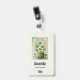 Name tag with a seasonal St. Patrick's Day image. Faded grunge style paper. A green pot of gold with coins