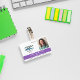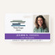 Carte d'identité horizontale de l'employé personnalisée avec photo et logo, nom et titre, numéro de badge et date d'expiration. Ajoutez le nom et le titre en blanc sur violet.
