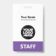 Personnalisez facilement ce badge de nom professionnel personnalisé sans photo, avec Scan Qr Code et logo d'entreprise. Un design d'entreprise simple dans des couleurs violet et blanc violet simple entièrement personnalisable en tailles avant et arrière, sans-serif polices de base et moderne et un look professionnel et clair, parfait pour les employés de petite entreprise, patron, invités. Ces fournitures de badges d'identification d'entreprise sont disponibles avec cordon, clip métallique ou avec rétractable. Pas de commande minimum, mais économiser de l'argent et profiter de rabais Zazzle par plusieurs commandes!