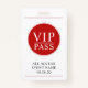 Un simple badge d'événement VIP en rouge et blanc avec votre date d'événement. Sélectionnez votre style de pièce jointe.