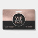 Template metallic rose gold and a small scattering of rose gold glitter on black VIP all access Event Badge. Replace with your own event date. Elegant luxe glam style. Choose your favorite attachment style.