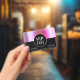 Template metallic pink and black VIP all access Event Badge. Replace with your own event date. Elegant luxe glam style. Choose your favorite attachment style.