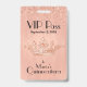 Un accessoire de fête Quinceañera chic fait dans un look de feuille de corail, avec une couronne rose gold et des graphiques de paillettes rose gold, le long du haut. Le texte noir est prêt à être personnalisé pour le grand jour de votre fille.