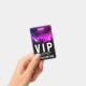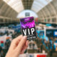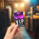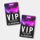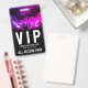 Ce badge VIP présente un design rose, violet et noir audacieux, parfait pour un concert en plein air ou une fête avec une ambiance Coachella. Le long du sommet, des silhouettes de palmiers s'étendent sur un ciel rose et violet vibrant, créant une ambiance festive amusante et énergique. L'image s'estompe en noir en bas, où le nom de l'événement, la date et "All Access Pass" sont affichés dans une police blanche sans serif. "VIP" est affiché en haut dans le même style simple pour un look élégant et moderne. La même conception apparaît de part et d'autre pour une sensation polie et cohésive. Tous les textes et les couleurs sont entièrement personnalisables, vous pouvez donc le faire correspondre parfaitement à votre événement.