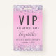 Une invitation unique à la fête de 16 ans sucrée qui sert également de badge pour les invités à porter à la fête et à garder comme une faveur de la fête souvenir. Ce joli design présente des confettis de parties scintillant violet, rose et argent brillant sur un arrière - plan rose, son nom dans un script gris doux et tendance et "VIP All Access Pass" sur le dessus. Au contraire, personnalisez l'invitation de fête d'anniversaire.