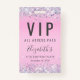Une invitation unique à la fête d'anniversaire qui sert également de badge pour les invités à porter à la fête et à garder comme une faveur de la fête souvenir. Ce joli design présente des confettis de parties scintillant violet, rose et argent brillant sur un arrière - plan rose, son nom dans un script gris doux et tendance et "VIP All Access Pass" sur le dessus. Au contraire, personnalisez l'invitation de fête d'anniversaire.