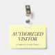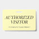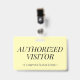 Cette conception de badge respectable présente le message "VISITEUR AUTORISÉ" et un nom de société personnalisable ou un autre message personnalisé. Un badge comme celui-ci pourrait peut-être être utilisé pour indiquer qu'une personne est un invité connu et autorisé ou un visiteur dans une entreprise ou un lieu de travail. [~Z0000307]