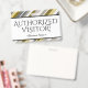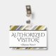 Ce design de badge glamour comporte le message "VISITEUR AUTORISÉ !", ainsi qu'un nom de société personnalisable ou un autre message personnalisé. Un badge comme celui-ci pourrait être utilisé pour indiquer qu'un visiteur ou un invité sur un lieu de travail est autorisé à y être. [~Z0000307]