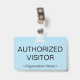 Ce modèle de badge simple comporte le message "VISITEUR AUTORISÉ" et un nom de société personnalisable ou un autre message personnalisé. Un badge comme celui-ci pourrait être utilisé pour identifier une personne sur un lieu de travail ou dans une entreprise comme étant un invité/visiteur autorisé. [~Z0000307]