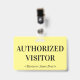Ce badge classique comporte le message "VISITEUR AUTORISÉ" ainsi qu'un nom de société personnalisable ou un autre message personnalisé. Un badge comme celui-ci peut être utilisé pour identifier une personne sur un lieu de travail ou dans une entreprise comme étant un invité/visiteur autorisé. [~Z0000307]