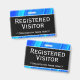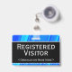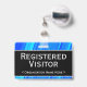 Ce badge respectable comporte le message "Visiteur Inscrit", ainsi qu'un nom de société personnalisable ou un autre message personnalisé. Un badge comme celui-ci pourrait être utilisé pour indiquer qu'un visiteur ou un invité sur un lieu de travail est autorisé à y être. [~Z0000307]