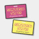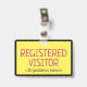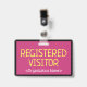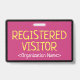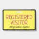Ce design de badge minimaliste comporte le message "VISITEUR INSCRIT" et un nom de société personnalisable ou un autre message personnalisé. Un badge comme celui-ci pourrait être utilisé pour identifier que quelqu'un sur un lieu de travail ou une entreprise est un invité/visiteur autorisé. [~Z0000307]