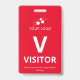 Badge de visiteur vertical avec un design simple en blanc sur fond rouge. Un grand V blanc permet de reconnaître facilement le visiteur en tant que tel. Personnalisez avec votre logo d'entreprise.