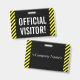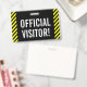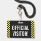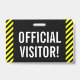 Ce modèle de badge accrocheur comporte le message "VISITEUR OFFICIEL !". Il comporte également des bandes de signalisation de couleur jaune et noire. Le verso comporte un nom de société personnalisable ou un autre message personnalisé. [~Z0000286]