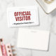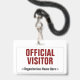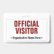 Ce modèle de badge simple comporte le message "VISITEUR OFFICIEL" et un nom de société personnalisable ou un autre message personnalisé. Il comporte également une bordure à une ligne avec des coins arrondis. Un badge comme celui-ci pourrait peut-être être utilisé pour montrer que quelqu'un dans une entreprise ou un lieu de travail est un invité ou un visiteur autorisé. [~Z0000307]