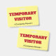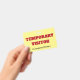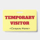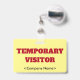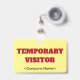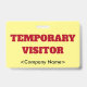 Cette conception de badge en gras comporte le message "VISITOR TEMPORAIRE", ainsi qu'un nom d'entreprise personnalisable ou un autre message personnalisé. Un badge comme celui-ci pourrait être utilisé pour indiquer que quelqu'un dans un lieu de travail ou une entreprise est un invité/visiteur autorisé. [~Z0000307]