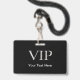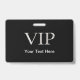 Badges de visiteur, invité ou événement VIP élégants en noir avec un texte VIP de couleur argentée cool créés sous forme de graphique ainsi que du texte supplémentaire que vous pouvez personnaliser en ligne. Créé pour une entreprise, une entreprise ou des événements spéciaux ou des boîtes de nuit.