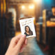 Utilisez les champs modèles pour remplacer la photo du détenteur par la vôtre. J'ai ajouté une image peinte représentant les mots "voici le sourire derrière mon masque" dans une police décontractée d'écriture manuscrite. Les mots ont été embellisés avec une finition métallique en faux or. Le même or a été ajouté en haut et en bas, et à l'arrière du badge. Si vous choisissez d'utiliser une couverture faciale pour protéger les membres de votre communauté, voici une façon amicale de communiquer avec ceux que vous rencontrez lorsque vous devez être à l'extérieur et dans les environs. Tu es habitué à ce que les gens puissent voir ton sourire... eh bien maintenant, ils le peuvent ! Ce n'est pas parfait, mais ça se fera jusqu'à ce que les choses reviennent à une manière plus familière.