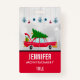 Insigne de nom avec une vieille voiture rouge cool portant un pin vert de Noël sur son toit et un cadeau caché dans le coffre ouvert. A une belle flair de style rétro des années cinquante.Boules de Noël, flocons de neige et étoiles strung à travers le sommet. Situé sur un arrière - plan de livres d'argent avec des étoiles élégantes éparpillées un peu partout. Bordure rouge le long du bas avec votre nom et votre titre personnalisés à l'intérieur.