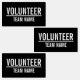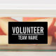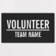 Black Volunteer Badge avec le titre "Volunteer" et le nom de l'équipe en blanc gras sans serif police sur arrière - plan noir. Aussi parfait pour les stagiaires, l'équipage, le personnel, le groupe, l'équipe et plus.