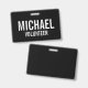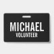 Black Volunteer Badge avec nom et titre en blanc gras sans serif police sur Black arrière - plan. Aussi parfait pour les stagiaires, l'équipage, le personnel, le groupe, l'équipe et plus.