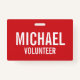 Badge volontaire rouge avec nom et titre en blanc gras sans serif police sur arrière - plan rouge. Aussi parfait pour les stagiaires, l'équipage, le personnel, le groupe, l'équipe et plus.