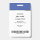 Badge volontaire avec photo, nom, logo et toutes les informations; plus lieu pour la barre de numérisation et les numéros. Design brossé en argent, bleu et noir.