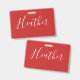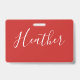 Badge Votre écriture blanche personnalisée sur fond roug