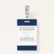 Votre compagnie de soins de santé logo personnalisé Clip photo Nom Badge pour médecin, chirurgien, infirmière, dentiste, employé, bénévole et toute profession médicale avec le symbole de la médecine du caducée à l'arrière. Avec Photo personnalisée, Logo, Code barre, Nom, Département et informations supplémentaires. Un design simple et clair en bleu marine et blanc, avec des polices sans-serif. Utilisez ce badge de marque de nom moderne pour tout votre personnel pour garder toutes les informations importantes avec eux de manière simple. Photo de Humberto Chavez. Votre compagnie de soins de santé Logo Photo Clip métallique Nom Badge