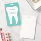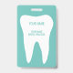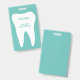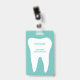 Badges de nom de cabinet dentaire avec logo de dent molaire blanche. Fournitures de clinique de dentisterie professionnelle et de cabinet dentaire. Personnalisez avec le nom de (société). Blanc et bleu sarcelle ou couleurs personnalisées. Incluez un clip ou une ligne de cordon pratique.
