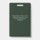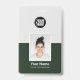 Personnalisez facilement ce badge d'identification de sécurité de nom d'employé personnalisé avec photo, nom d'employé, profession et logo d'entreprise. Un design d'entreprise simple en cool de couleur vert foncé et blanc entièrement personnalisable en tailles avant et arrière, sans-serif polices de base et moderne pour un look professionnel et clair. Les badges d'identification sont disponibles avec cordon, clip métallique ou avec rétractable. Pas de commande minimum.
