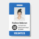 Nom du bénévole personnalisé, logo de l'entreprise, photo, code à barres ou code Qr Badges avec Clip ou Lanyard avec couleurs vives bleu clair et blanc.
