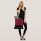 This cute stylish large tote bag is shown in a Wine and Black color block style with a silver pageant crown known as the afterglow series. Custom text.