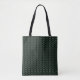 A simple dark green and black line patterned tote bag.