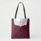 Step out in distinct style with this 'Peeking Design' tote bag. This chic accessory boasts a striking burgundy red and elegant black floral patterns, designed to turn heads. The faux-fold reveals a white interior accented with a stylish monogrammed initial and personalized name, adding an exclusive, custom touch. It’s more than just a bag; it’s a wearable piece of art that speaks to a discerning taste for unique details and contemporary fashion. Perfect for adding a sophisticated edge to any outfit.