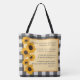 Carry your daily essentials with joy and purpose with this striking double-sided tote featuring radiant sunflower photography on a bold black buffalo plaid background. The front bursts with sunflower detail, while the back showcases Psalm 148:1-4 in full: “Praise the Lord from the heavens; praise Him in the heights above...” A perfect companion for farmers markets, gardening outings, or everyday errands, this tote blends rustic charm with spiritual inspiration. Makes a thoughtful gift for gardeners, nature lovers, and faithful hearts alike.