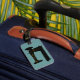Maintenez votre information pratique sur votre machine pour voyager aux classes ou ouvrez les expositions. Comporte un graphique vintage de machine à coudre sur un côté et une pelote à épingles et la pièce pour l'information de contact sur le dos. Art original par Rebecca de la ménagerie du couche-tard. 2012.