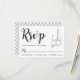 Une carte RSVP Mariage à thème élégante avec un hameçon tenant des bagues mariages en acier bleu, vert sauge et noir. Personnalisez le rsvp avec votre date de retour. Le fond est complété par un simple motif de filet de poisson. Se marie parfaitement avec Fishing Lure Faire-part de mariage. Pour modifier la taille, le placement et la couleur de la police, sélectionnez l'option "Modifier à l'aide de l'outil de conception" au bas de l'onglet personnalisations.