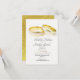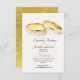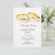 Une élégante invitation avec des anneaux mariages donnant à l'invitation une atmosphère très traditionnelle. Les anneaux sont sur un simple arrière - plan blanc avec la typographie dans une police moderne. La police est de nouveau en noir simple. Un bar de couleur or souligne le mot mariage. Le verso de l'invitation est de couleur or. L'invitation est facilement personnalisable à vos informations.