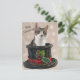 Photo de mon Tito assis dans un planteur de casquette de Noël qui a l'air plutôt agacé.