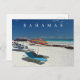 Une belle vue sur les chaises longues et les parasols sur la plage de Harbour Island aux Bahamas imprimés sur une carte postale.