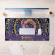 Élevez votre espace de travail avec ce tapis de bureau Zodiac Dot Mandala personnalisé Whimsical Aries, apportant style et fonctionnalité à votre bureau. Ce design magnifiquement complexe se concentre autour d’une tête de bélier stylisée, représentant l’énergie audacieuse et dynamique de Bries. Le bélier est orné de motifs tourbillonnants élaborés et de cornes en spirale, mis en valeur par une riche palette de violets, de bleus et de teintes dorées pour un attrait visuel vibrant et captivant. Autour du motif central se trouve un agencement concentrique d'arcs décoratifs, avec des formes répétées de pétales et de gouttes de larme qui rappellent l'art traditionnel mandala, ajoutant une touche de symétrie et d'élégance au design. Parfait pour améliorer votre espace de productivité, ce tapis de bureau offre une surface lisse et confortable pour le travail, les jeux ou l'écriture, tout en servant d'étonnant énoncé artistique. Personnalisez-le avec votre nom pour le rendre vraiment unique et significatif.