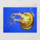 Baignade méduse sur carte postale bleue