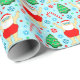 Emballage cadeau de vacances de natation créative avec nageur du Père Noël entouré de bonbons de Noël et de biscuits.
