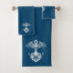 Ancrage nautique bleu et blanc orné d'un crâne, d'ailes et de fleurs sur un arrière - plan bleu foncé.
