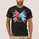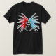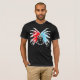 Baisers de Babylone… touchant sur le bleu absurde et simple, rouge, blanc, vert, T-shirt graphique jaune de motif. Les éléments incluent des ailes, un oeil central, et des points de couleur.