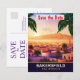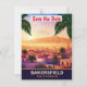 Bakersfield, sauvez la date invitation de mariage, carte postale de voyage. Beau coucher de soleil sur la ligne d'horizon de la ville et la montagne derrière.