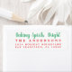 Baking esprits brillants de vacances retour étiquette d'adresse avec vert élégant script manuscrit calligraphie et vos noms dans la typographie moderne rouge. Ajoutez simplement vos noms et votre adresse. Étiquette cadeau de vacances idéal pour les pâtisseries maison, tarte aux pommes et biscuits de Noël. Conçu exclusivement pour vous par Happy Dolphin Studio. Si vous avez besoin d'aide ou de produits correspondants, veuillez nous contacter à happydolphinstudio@outlook.com . Nous sommes heureux de vous aider à faire de vos vacances la plus belle période de l'année!