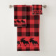 Serviette en plaid d'orignal de randonnée rustique avec motif plaid rouge et noir et silhouettes d'orignal. Parfait pour la décoration de la salle de bain ou la décoration cabine rustique.